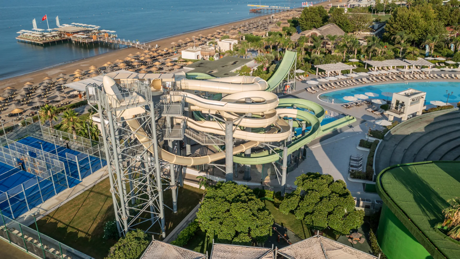 Ela Excellence Resort Belek, denize sıfır bir konuma ve geniş bir iskeleye sahip 270 metrelik özel plaja sahiptir. 15 golf sahasının bulunduğu bir bölgede yer alan otel, açık yüzme havuzları, su kaydırakları ve sauna ve Türk hamamı içeren spa olanakları sunmaktadır. Tesiste ayrıca Akdeniz atmosferinin keyfini çıkarmaya davet eden 110.000 m² yeşil alan bulunmaktadır.