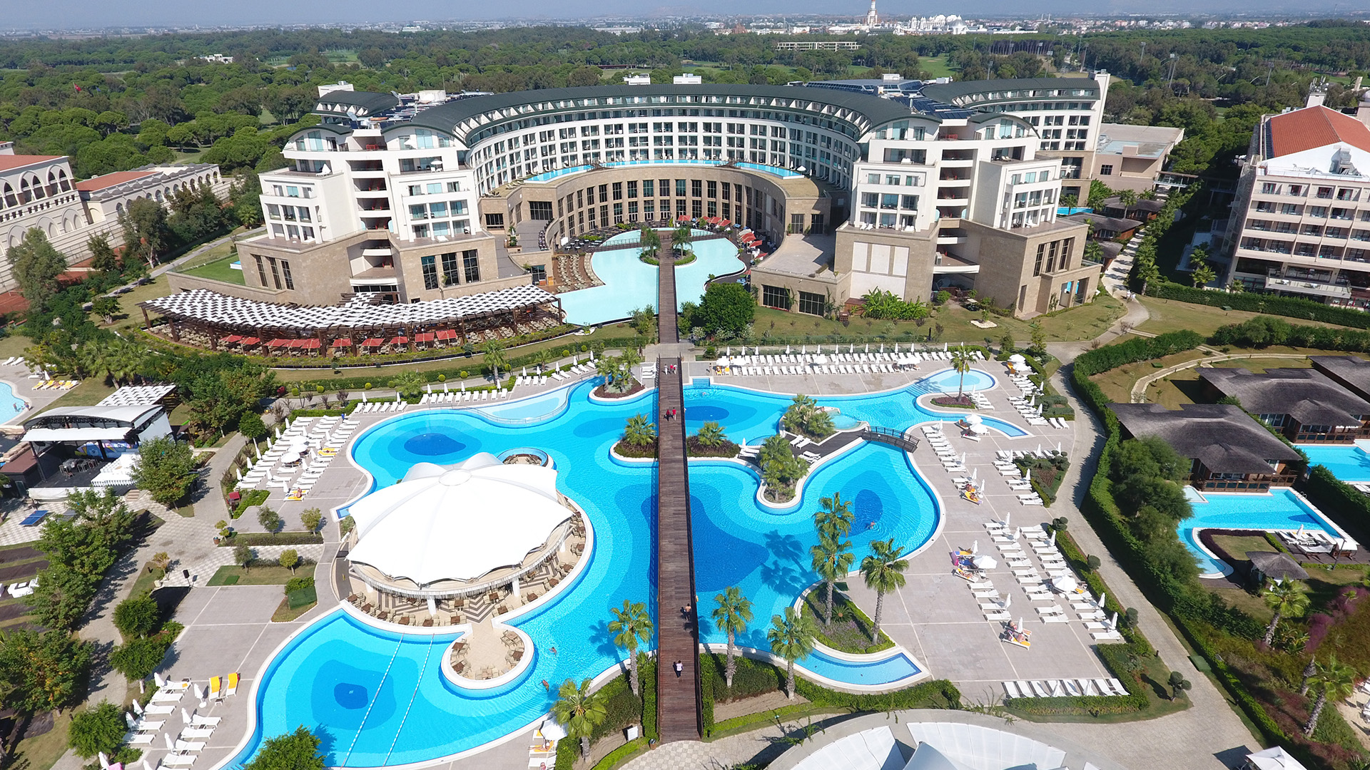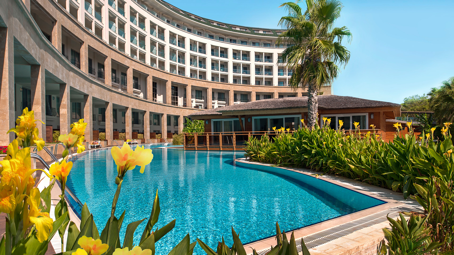 3.500 m2'lik SPA Merkezi, deniz manzaralı odaları, çocuklara sınırsız eğlence sunan mini kulübü, havuza çıkışlıözel odaları, ihtişamlı kongrelerin vazgeçilmez adresi Palazzo Kongre Merkezi, dünya mutfaklarının en seçkin lezzetlerini sunan a la carte restoranları ve kişiye özel birçok hizmetiyle misafirlerini ağırlıyor.